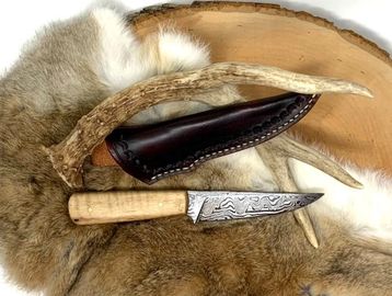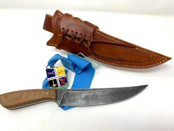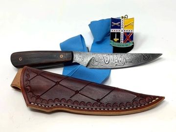 The second knife donated to the Order of St. Maurice. Multilayered damascus with a 4-3/4" blade and mosaic pins through desert ironwood